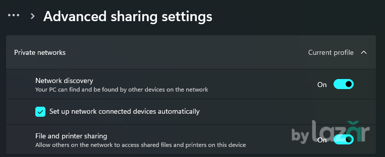 To share a folder from your Windows machine, you need to enable network discovery and file sharing.