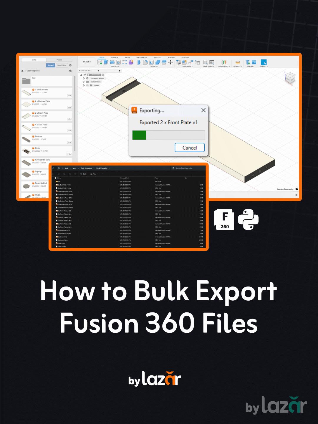 Fusion 360 Project Downloader lets you export entire projects in bulk with ease. Choose formats such as F3D, STEP, STL, or IGES, include DXFs, save versions, and preserve folder structures, all with simple controls, progress tracking, and detailed logs on Windows or macOS.
