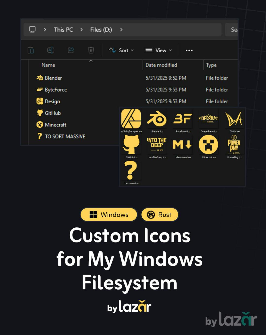 A clean, modern icon library for your Windows filesystem, designed in Affinity Designer and powered by Rust.